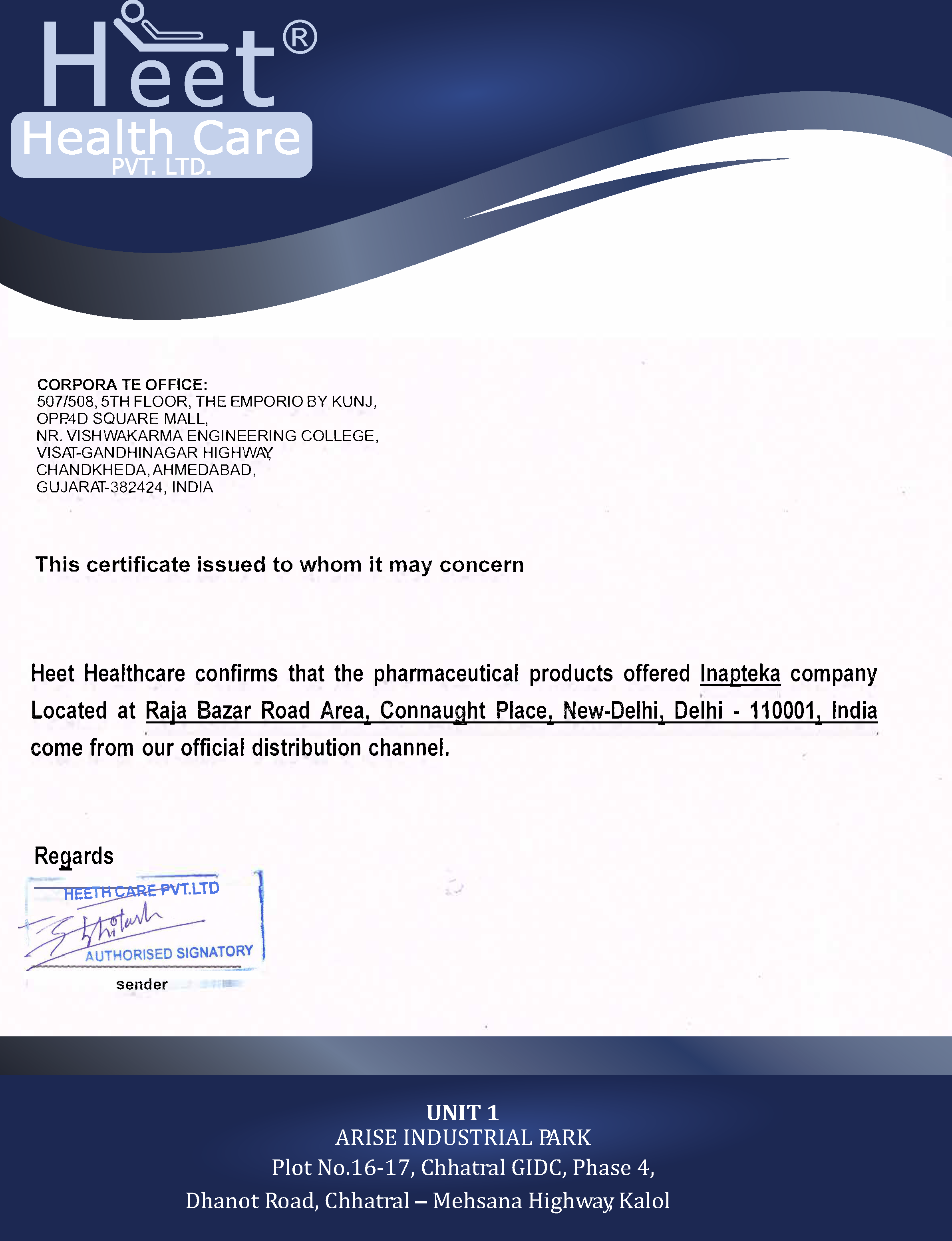 Inditeka — это крупный индийский фармацевтический дистрибьютор. Мы продаем продукцию в соответствии со всеми требованиями законодательства нашей страны (Индии) и страны покупателя.